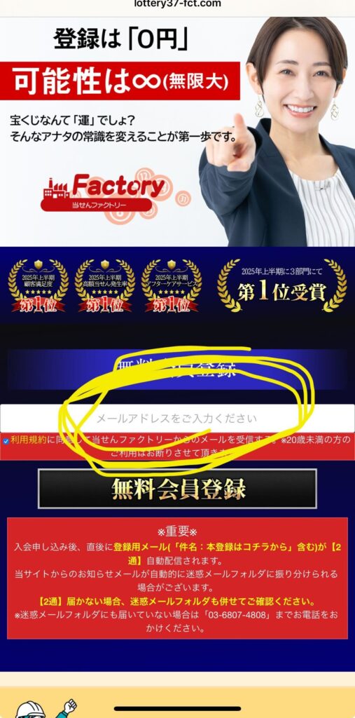 はじめに当せんファクトリーの公式ページへ進みます
