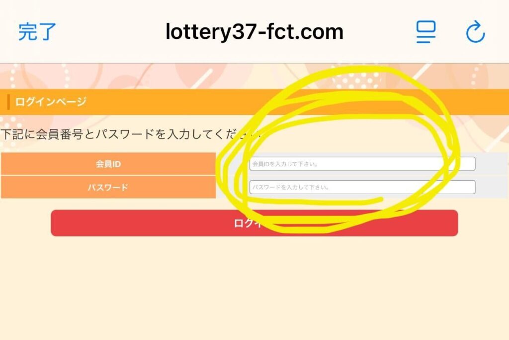 会員IDとパスワードをそれぞれ入力し、ログインボタンから限定ページへ進む